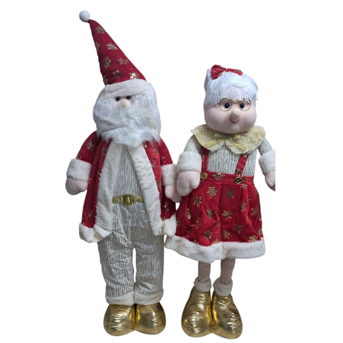 Patilargos con vestido de terciopelo en tonos rojo y dorado.